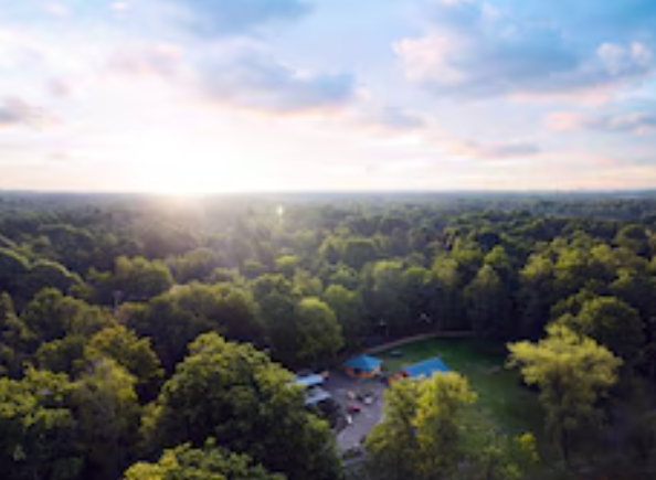 Bovenaanzicht van de Beleefboerderij op het Meerdal